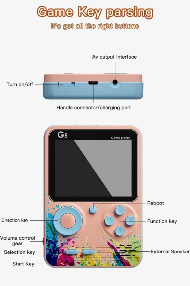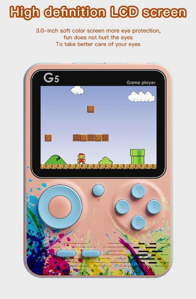 The Backlit Function of the Screen ensure players can play everywhere Rechargeable Li-ion Battery ( Player Can Play upto 3 Hours Of Gameplay )G5 Game made up of Premium plastic Quality & Many More Feature ( Scroll Down For More Info. )Important Note :- ( Color As Per stock ) ( Pink Blue, Blue Grey )